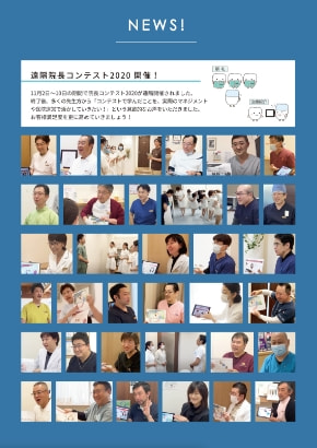 月に1度、全加盟院での情報共有化を目的に各医院にレポートを発行します。クライアント満足度向上のために取り組むべき課題、他医院の成功事例など、ホワイトエッセンスの情報だけではなく、マネジメントに関する経営知識もレポートに記載されています。(一部のページのみ抜粋し掲載)